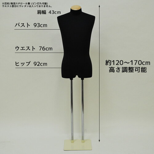 和装トルソー 和装ボディ メンズ 腕なし 黒ニット張り 組立簡単スチール台 GN24-29 【北海道・沖縄・離島送料別途】