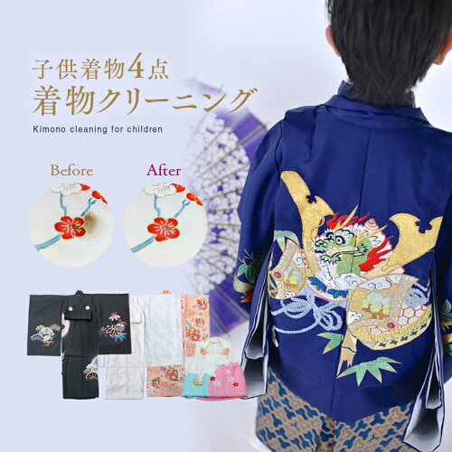 七五三 子供用 着物 なんでも4点 クリーニング[着物・襦袢(じゅばん)・帯・袴(はかま)・羽織(はおり)などのクリーニング]
